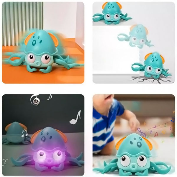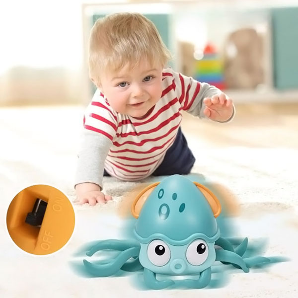Ez a játékos polip körbe-körbe mászik, arra ösztönözve a babákat, hogy kövessék és fejlesszék motoros készségeiket.