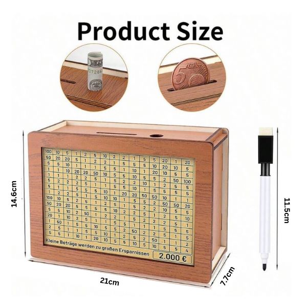 Tökéletes a megtakarítások előrehaladásának nyomon követésére, ez a doboz elősegíti a pénzügyi fegyelmet és a hatékony pénzkezelést mindenki számára.