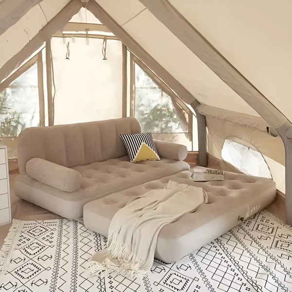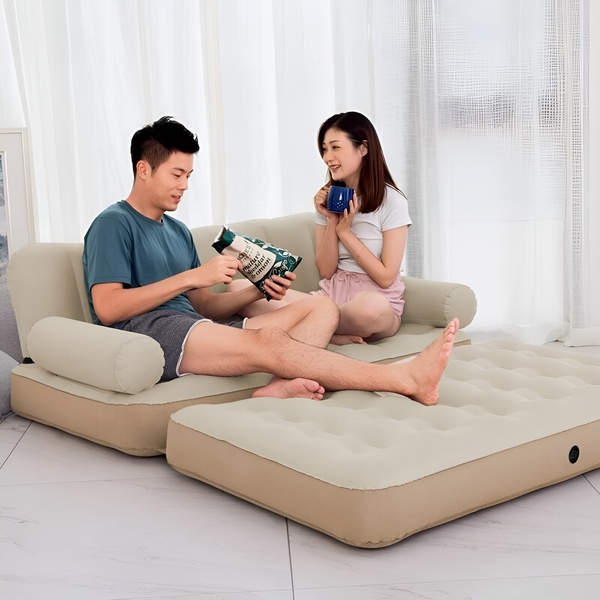 🛏️ Gyorsan és egyszerűen felfújható a kényelmes alváshoz, majd kanapévá hajtogatható a pihenéshez.