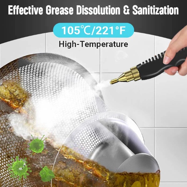 A 1600W névleges teljesítmény kevesebb mint 10 másodperc alatt akár 105℃-os gőzt állít elő, amely gyorsan eltávolítja a zsírt, koszt, port és foltokat különböző felületekről.