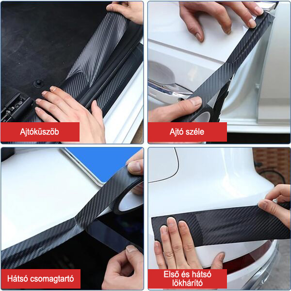 🔹 Külső védelem – alkalmazza ajtókon, tükrökön és csomagtér szélén, hogy megakadályozza a kulcsok, gyűrűk vagy véletlen ütések okozta karcolásokat.