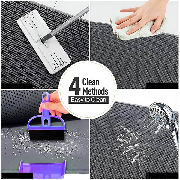 Ennek a szőnyegnek a tisztítása gyerekjáték. Egyszerűen rázza le az almot, porszívózza ki, vagy öblítse le vízzel. Ha a macska hányt a szőnyegre, akkor slaggal lemoshatja; könnyen tisztítható és száraz lesz. Megvédi a keményfa padlót és a szőnyegeket a csúnya vizeletfoltoktól. Megakadályozza, hogy a macska vizelete mindenhová jusson.
