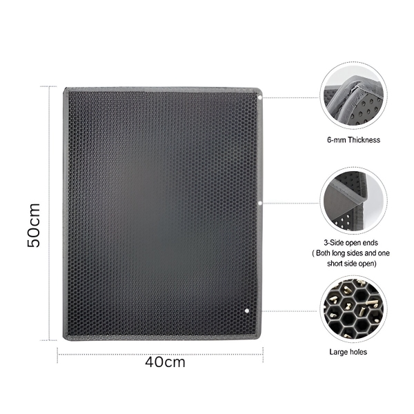 Nincs többé szétszórt szemét a házban. Ez az innovatív szőnyeg a tetején található méhsejtes kialakítással apró lyukakon keresztül felfogja az almot. Amikor a macskája kisétál az alomtálcából, a mancsához tapadt összes alom és szennyeződés felfogásra kerül, és becsúszik az alomtálca szőnyeg alsó rétegébe. Így könnyen visszateheti a szemetesládába, és a padlója makulátlan marad.