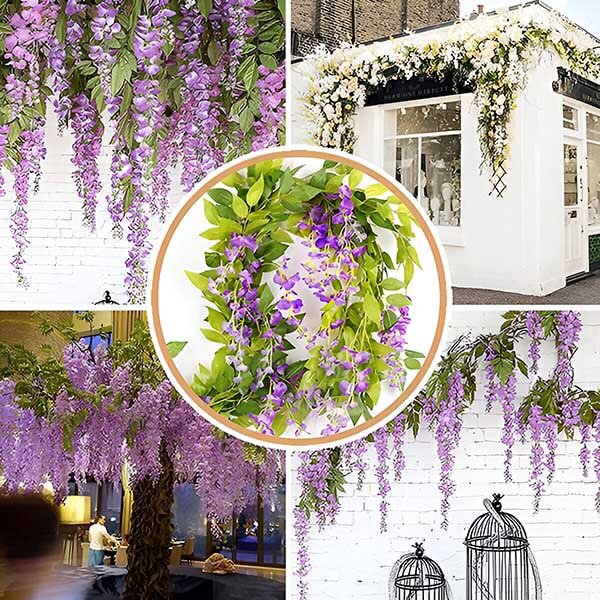 Szereti a vibráló virágos dekoráció ötletét, de nincs ideje a karbantartásra? A WISBLOOM hosszú, buja indái könnyen karbantarthatók és számtalan módon elrendezhetők. Akassza fel őket falakra, ajtókra, hintákra vagy tükrökre, vagy használja őket étkezőasztalok, kerítések és egyebek díszítésére.